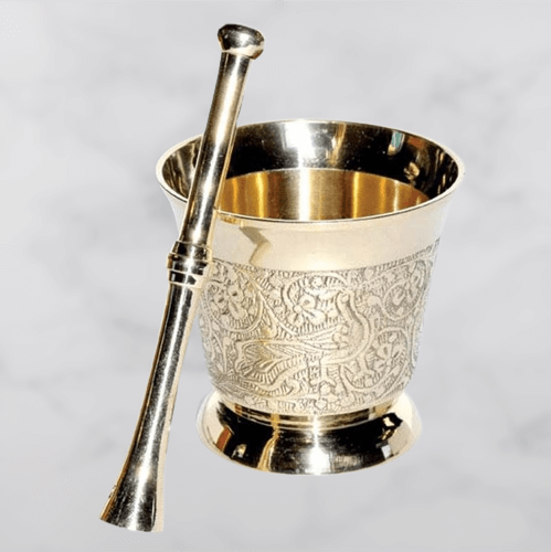 Item: FH-138 Name: Brass Mortar & Pestle Description: Polished